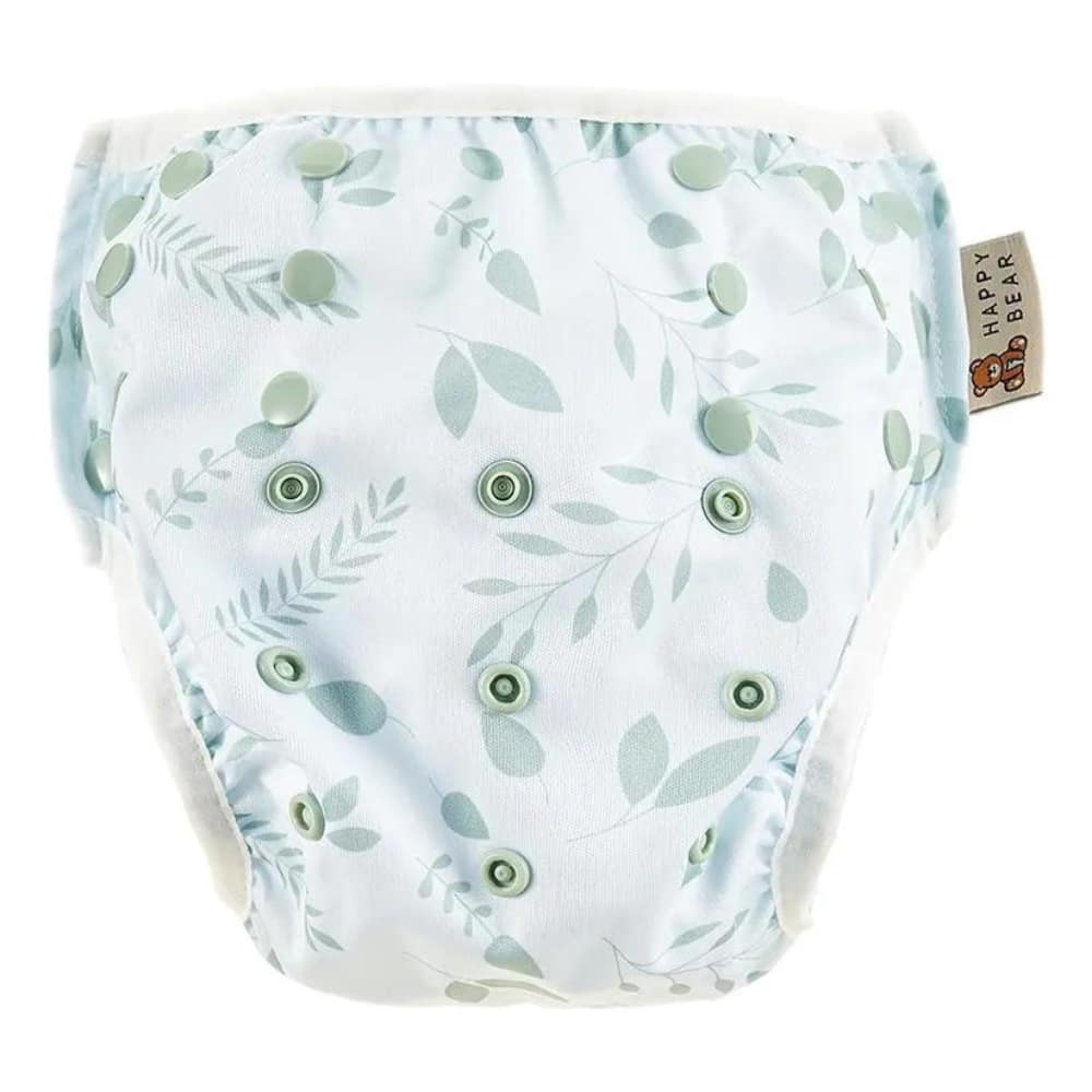 Zorg dat de zwemluier goed aansluit om de beentjes en de romp van je baby, zodat eventuele ontlasting er niet uit kan lopen. Er hoeft geen wegwerp zwemluier onder de HappyBear zwemluier.